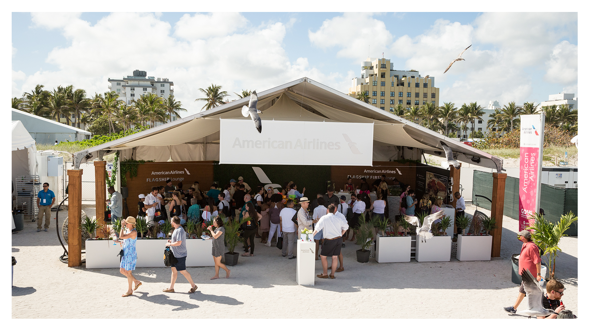 Concepted and executed the American Airlines Flagship Lounge SOBEWFF Event, designed collateral and illustrated the acrylic South Beach skyline.